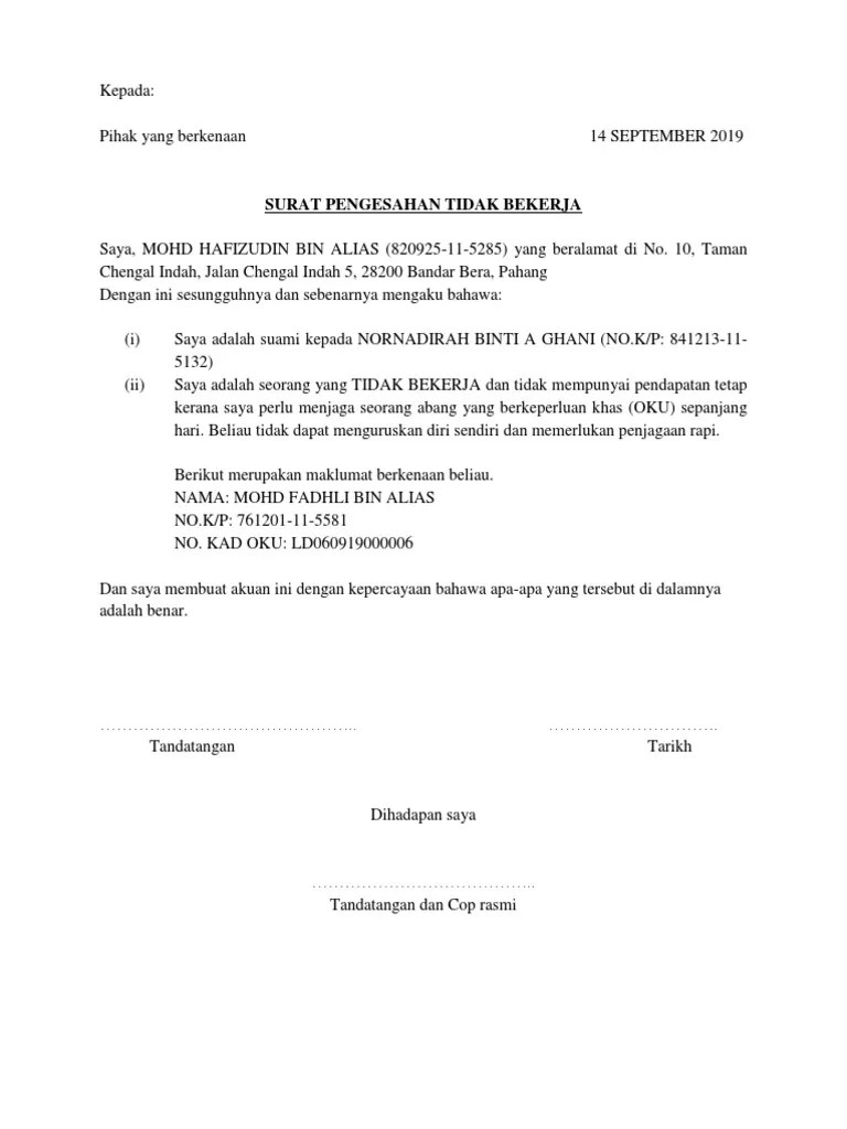 Pendapatan Surat Pengesahan Tidak Bekerja : Surat Pengesahan Pendapatan Bekerja Sendiri Surat Rasmi Akuan Tidak Bekerja Juga Mengesahkan Cuitan Dokter